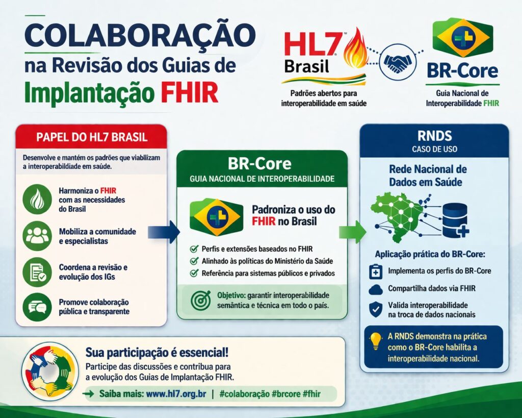 Interoperabilidade só se constrói com comunidade. Se você atua com FHIR, saúde digital ou interoperabilidade no Brasil, sua contribuição é essencial neste momento!